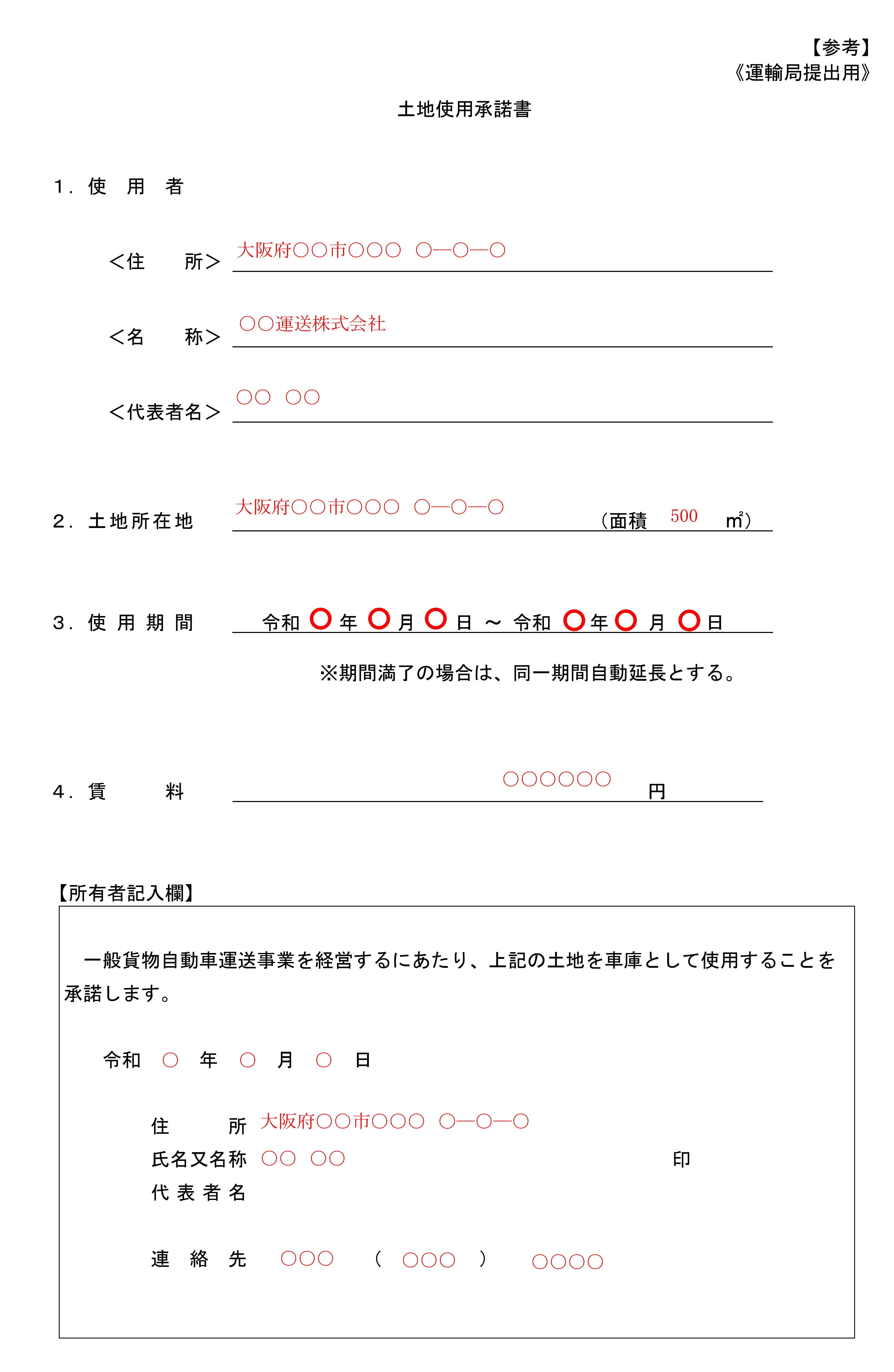 利用運送の保管施設を設置する場合のみ添付します。