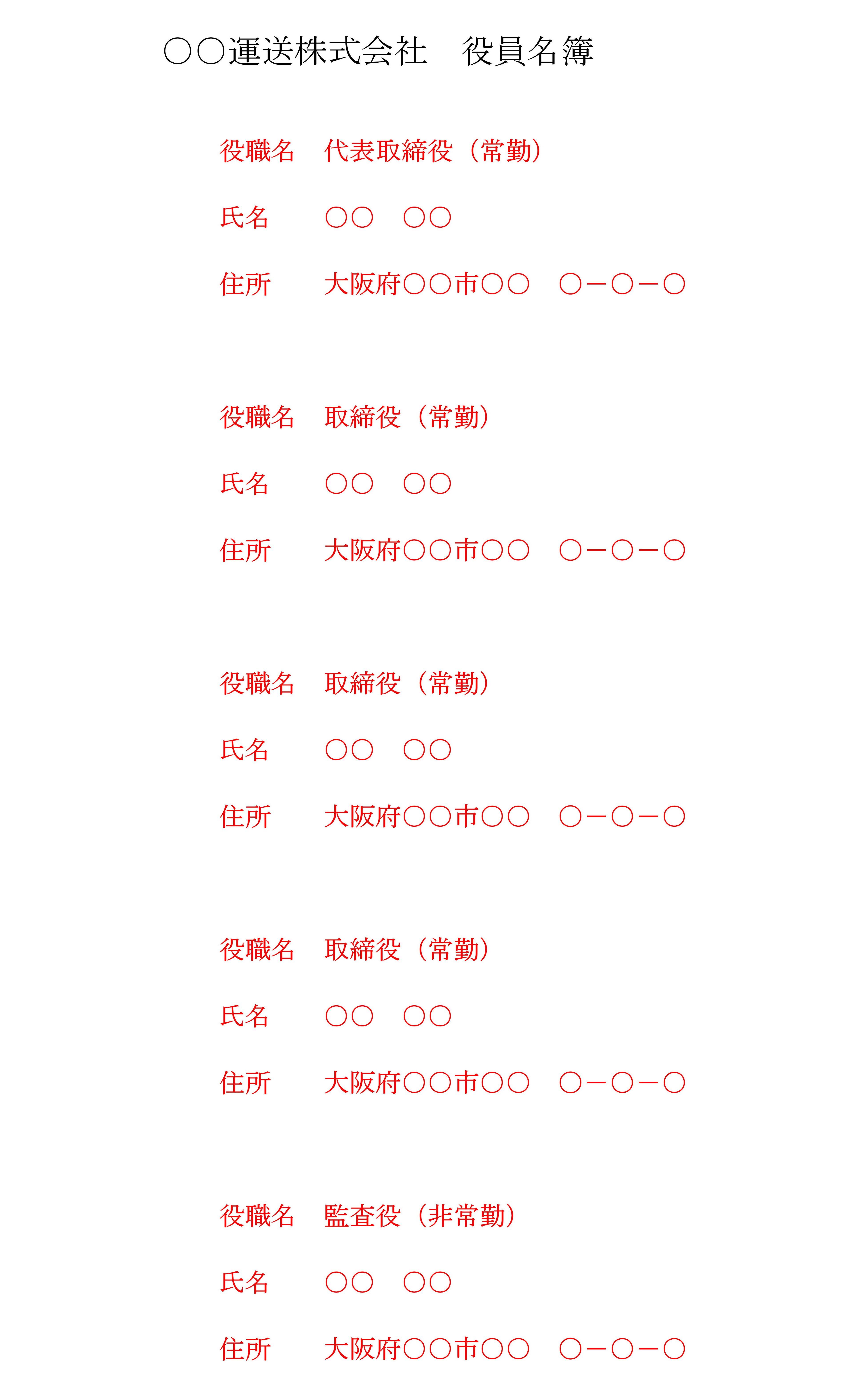 様式は自由様式です。監査役についても記載します。