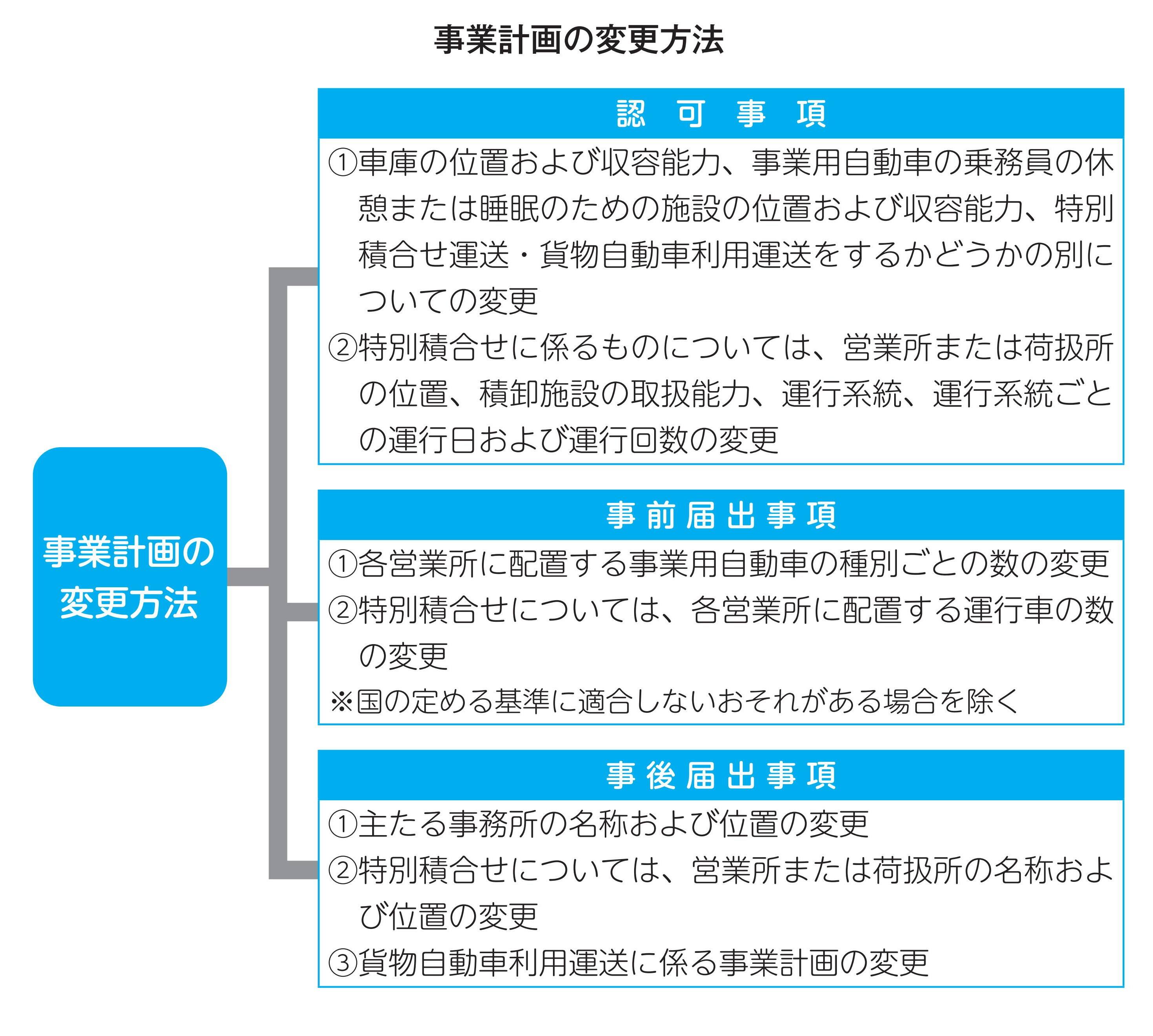 一般貨物自動車運送事業変更等手続き一覧