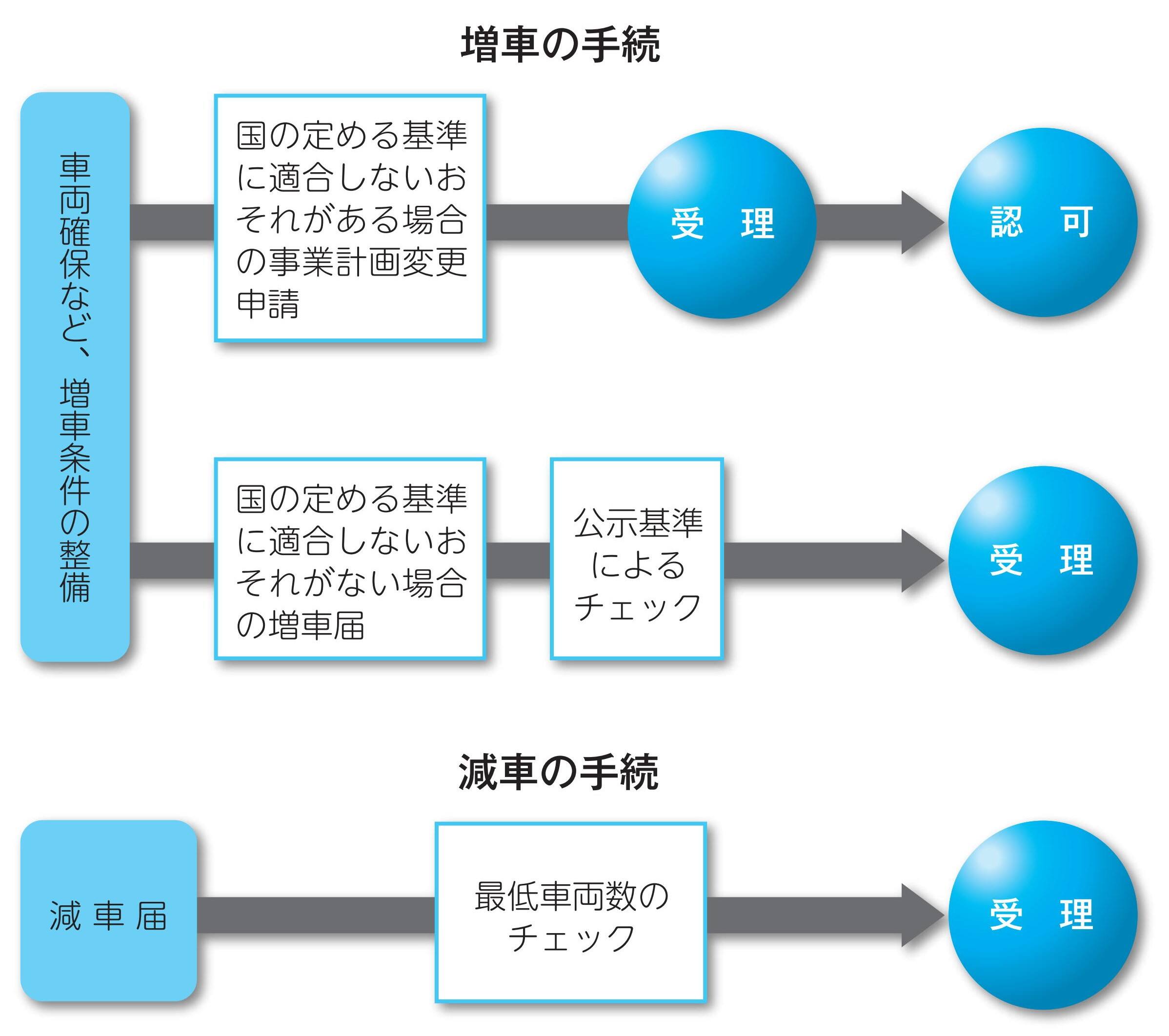 5台以上配置するための適切な計画を有している場合に限り認可されます。 - 法令遵守が十分でないおそれがある場合に増車を行おうとする場合