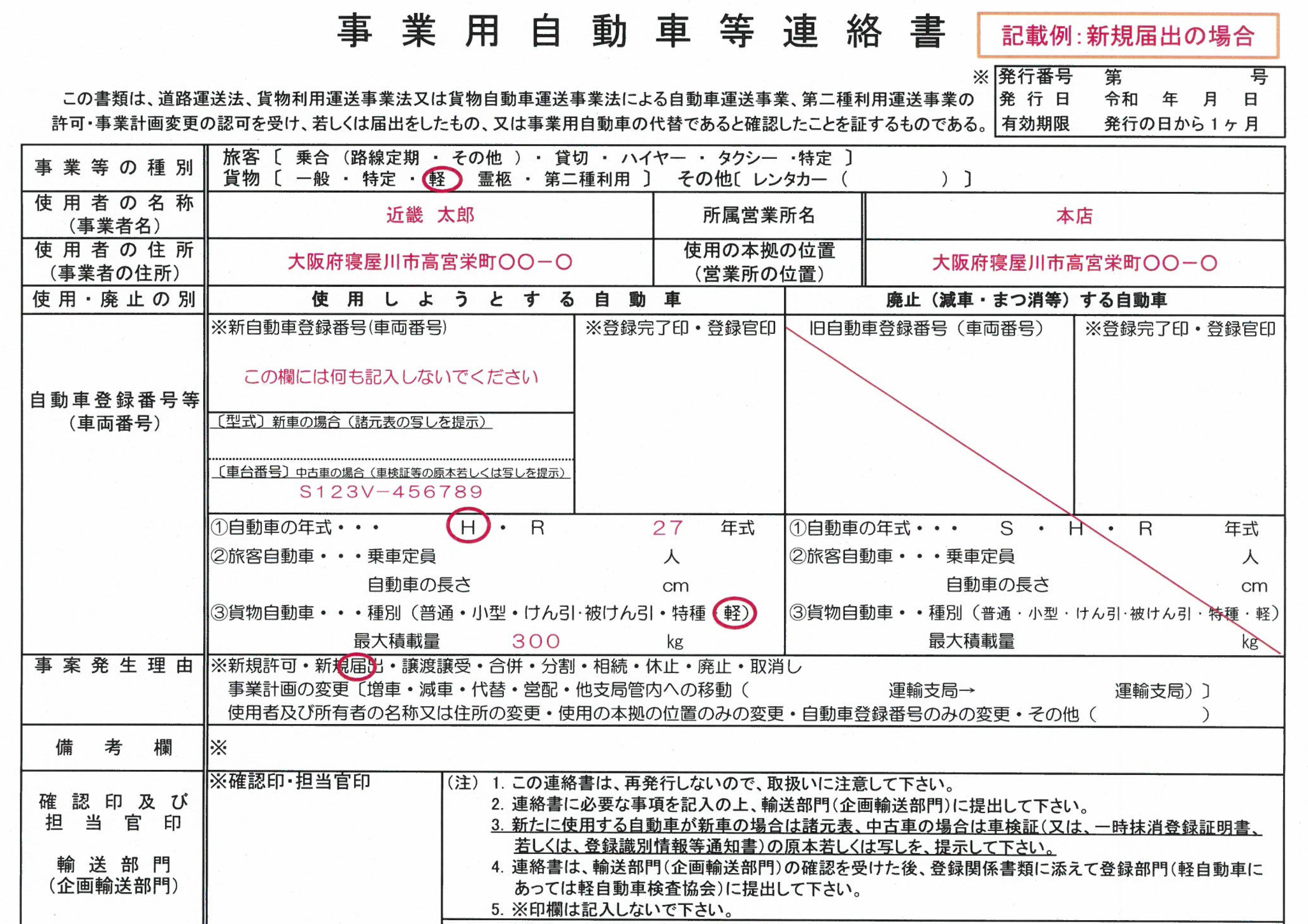 運輸支局輸送担当窓口で交付を受けた上記「事業用自動車等連絡書」を持って管轄の軽自動車検査証協会でナンバー変更等の手続きを行います。