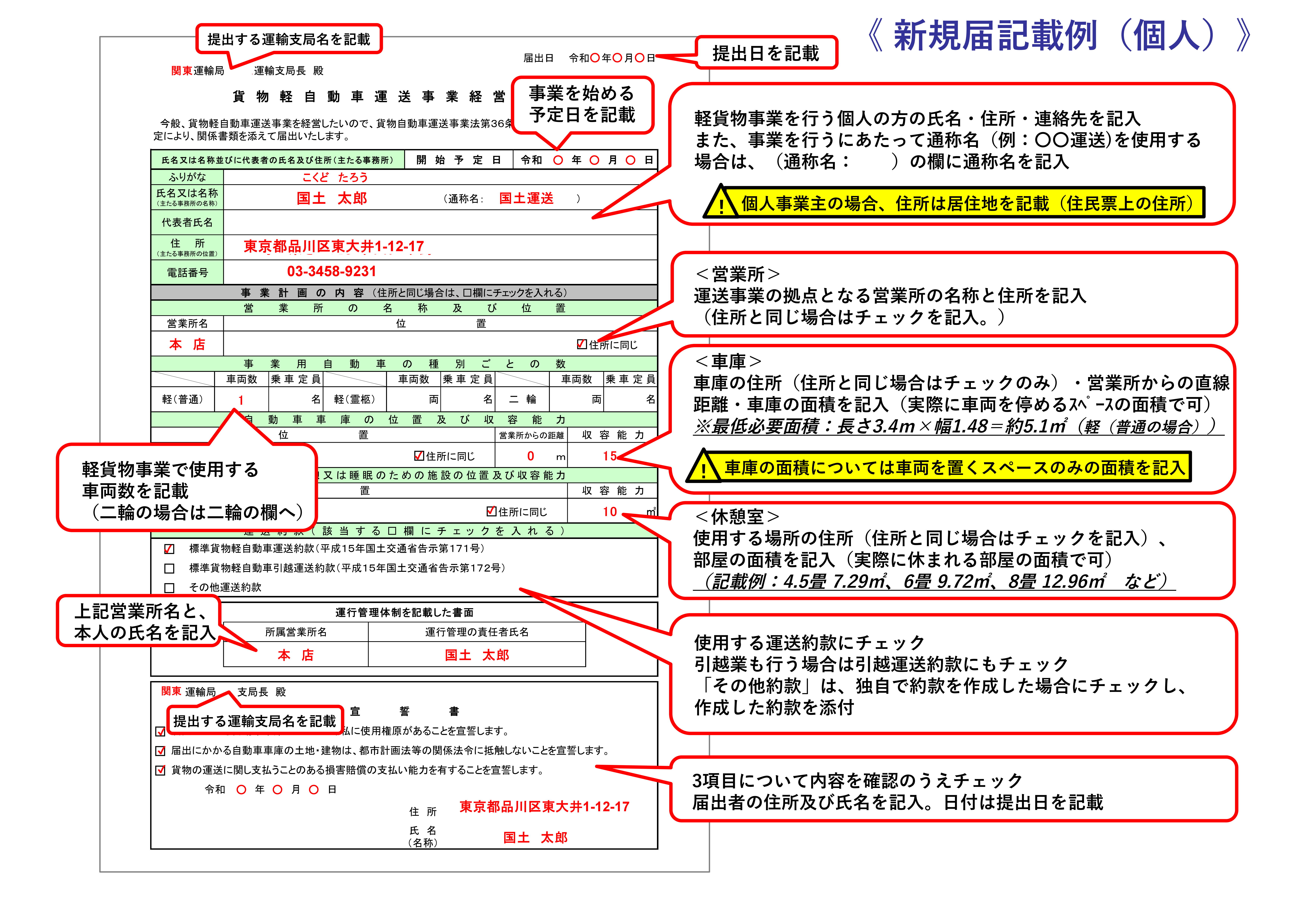 「軽貨物」の届出は管轄の運輸支局に対して行いますが、経営等に関する届出については、具体的な基準が公示されており届出が受理されるためには、この基準を満たしている必要があります。
