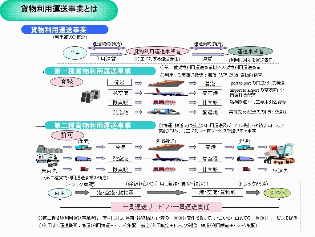 貨物利用運送事業は2種類に分かれます。